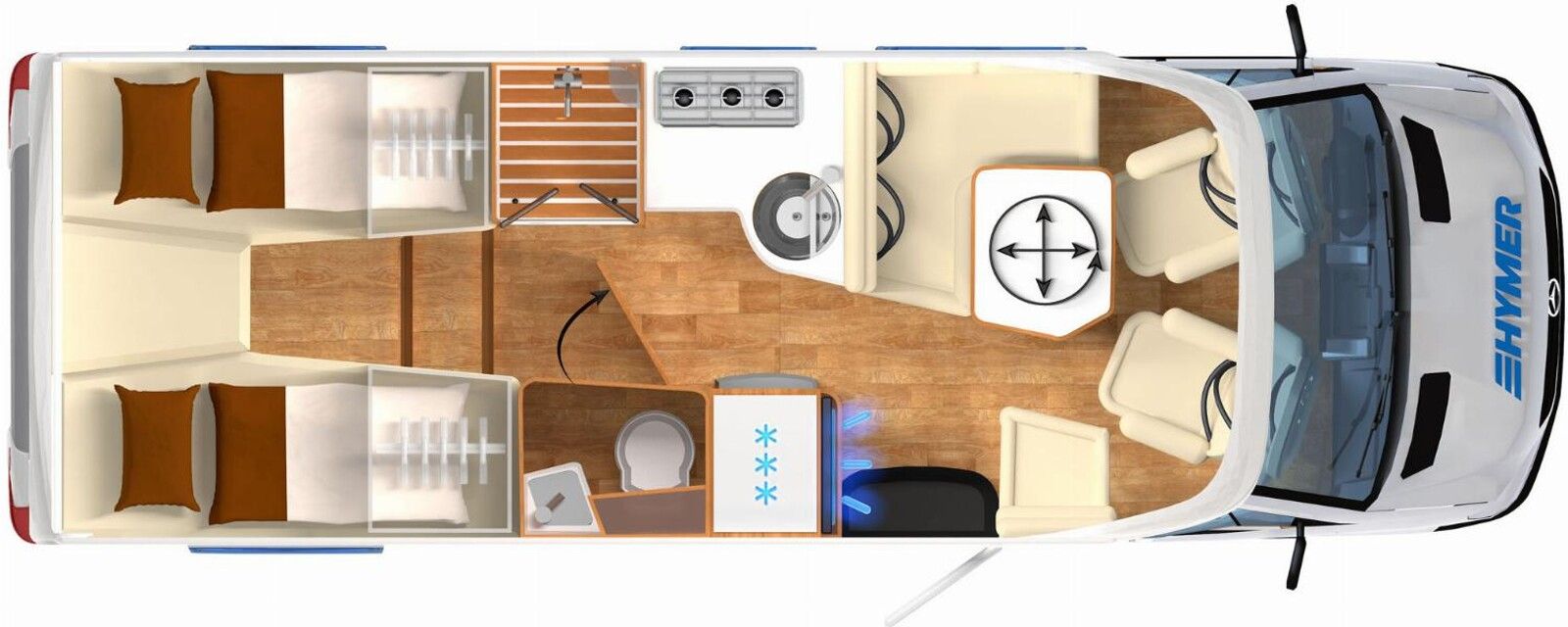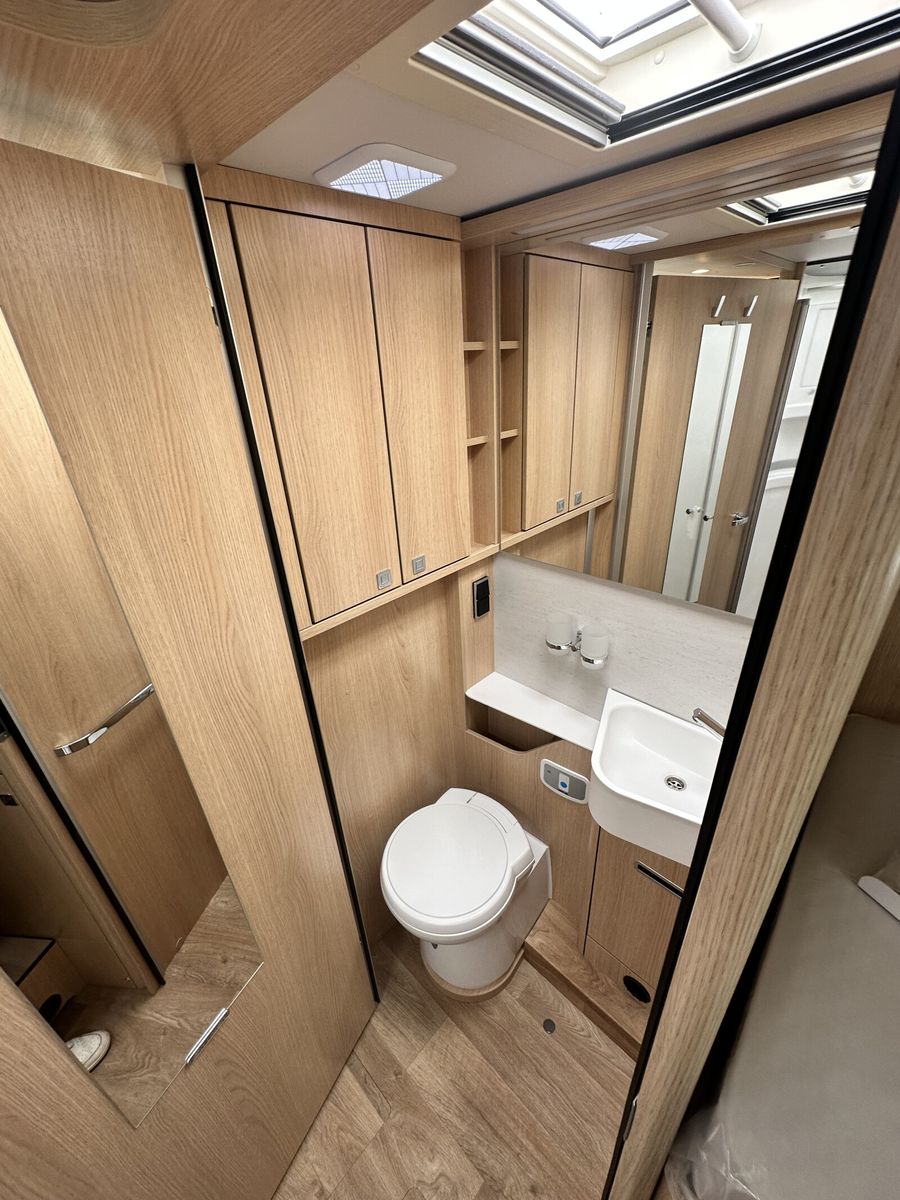 - Wohnkomfort-Paket (Einlegeboden mit Holzoberfläche, Spannbettlaken nach Maß für Heckbetten individuell an Matratzen angepasst, 4 Kissen mit Bezug, Ambient-Light-System: Mehr-Ebenen Lichtsystem mit dynamischer und individueller Steuerung der Beleuchtung (inkl. Lichttemperatur) sowie stimmungsvoller Sockelbeleuchtung, 4 x 230 V / 1 x 12 V / 1 x Doppel-USB Zusatzsteckdosen (inkl. Küchenwand-Verkleidung))
