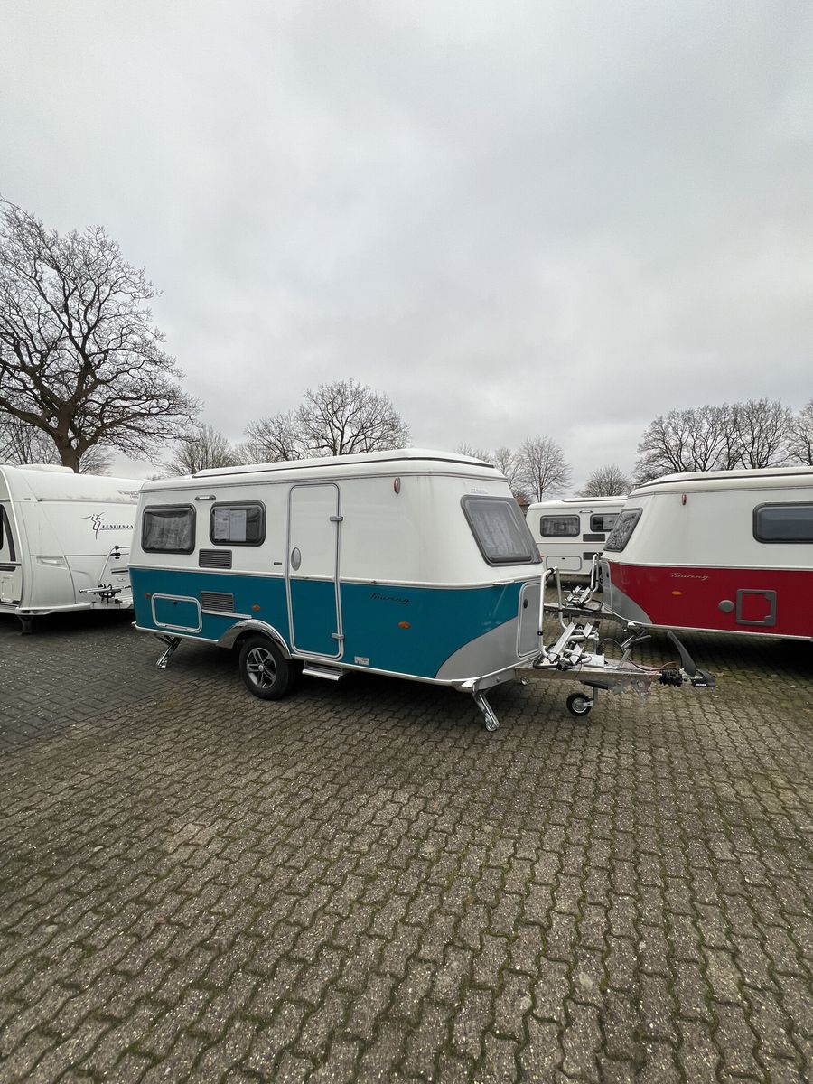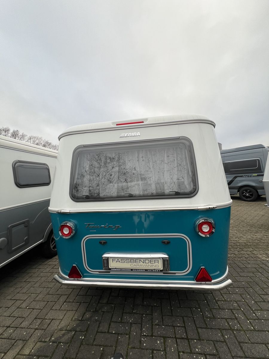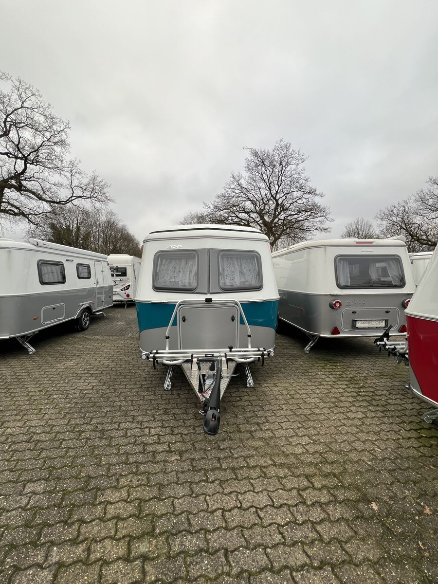 - Harbour Blue Edition (Seitenwände, Bug und Heck in Glattblech, Farbe White Harbour Blue, Stoffkombination Orlando für Ausstattungslinie Urban, Möbeldekor Tindari, Chrompaket mit Außenanbauteilen in Chrom und Radlaufblende sowie Rückleuchten in Retrodesign, Leichtmetallfelgen ERIBA 5-Stern-Doppelspeiche, anthrazit, Steinschlagschutzblech, Bumper aus Edelstahl, Ambientelicht XL mit indirektem Licht oberhalb der Dachstauschränke und zwei zusätzliche ERIBA Multifunktions-Akkuleuchten, 2 Kissen mit Bezug)