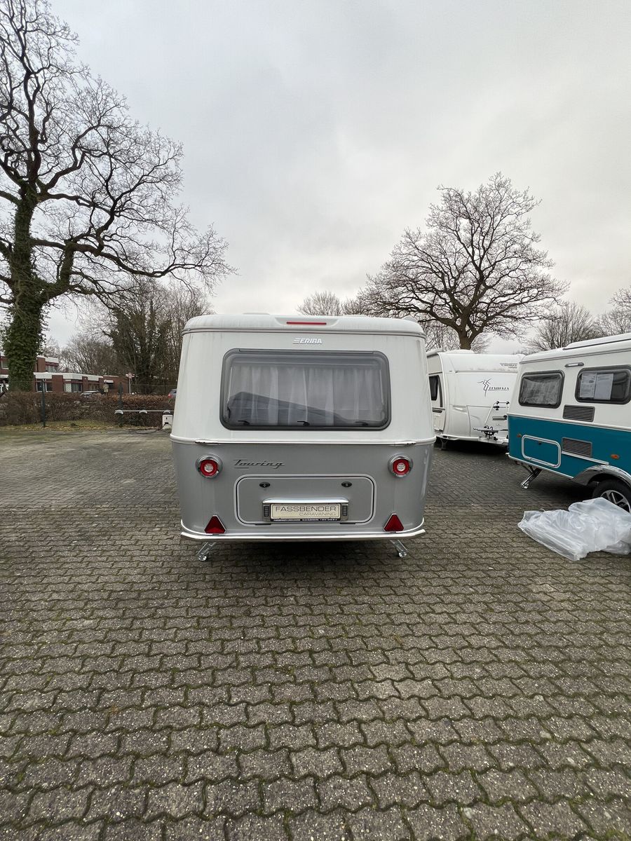 - Ausstattungslinie Urban (Außenfarbe White Silver) (Seitenwände, Bug und Heck in Glattblech, Farbe White Silver, Möbeldekor Tindari, Ambientelicht XL mit indirektem Licht oberhalb der Dachstauschränke und zwei zusätzliche ERIBA Multifunktions-Akkuleuchten, 2 Kissen mit Bezug)