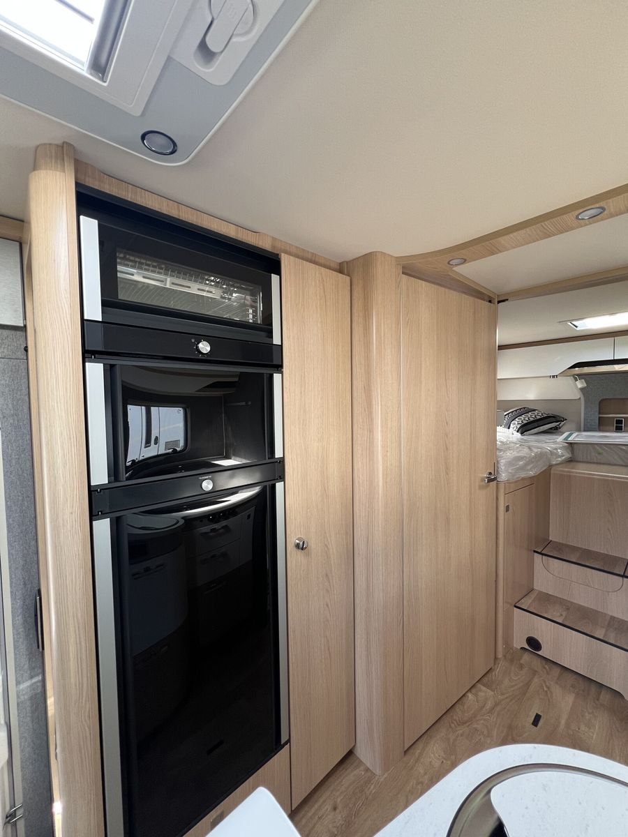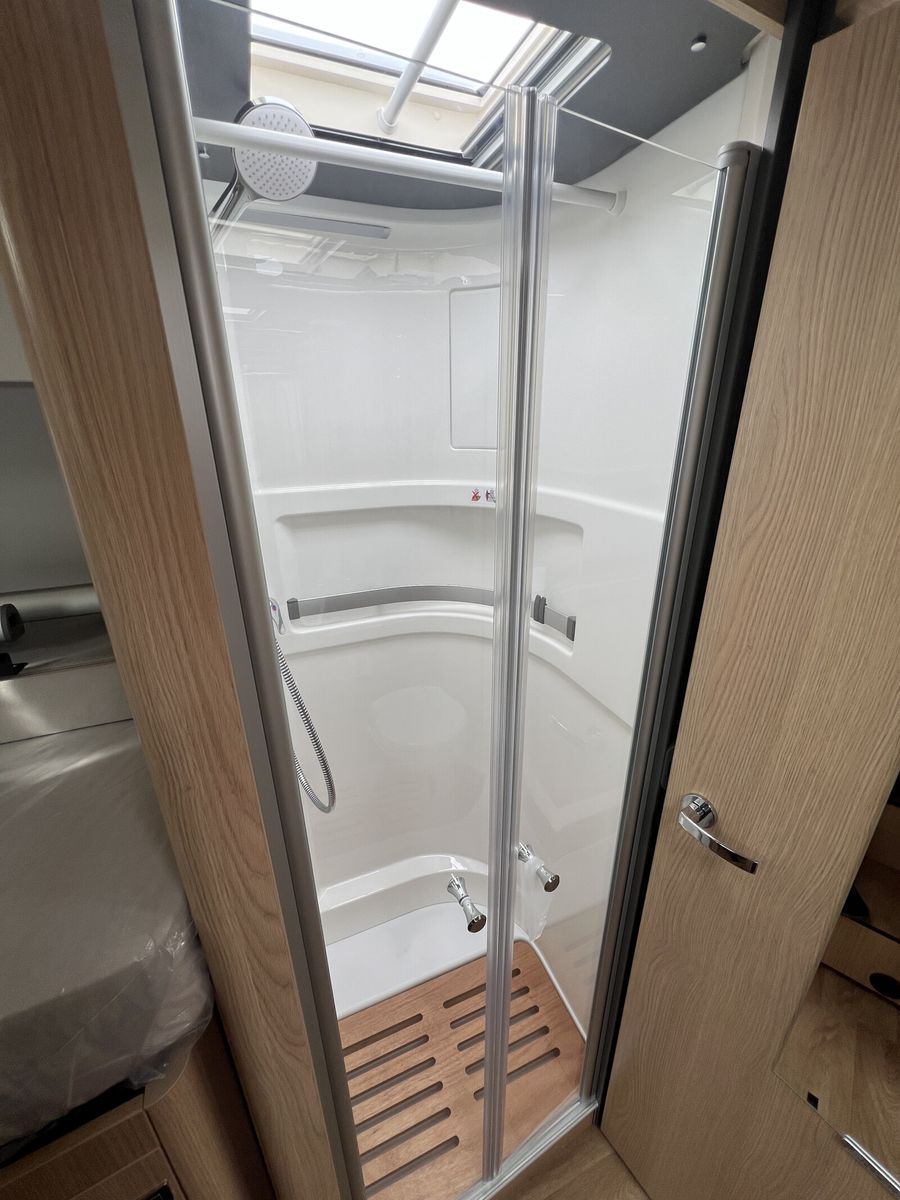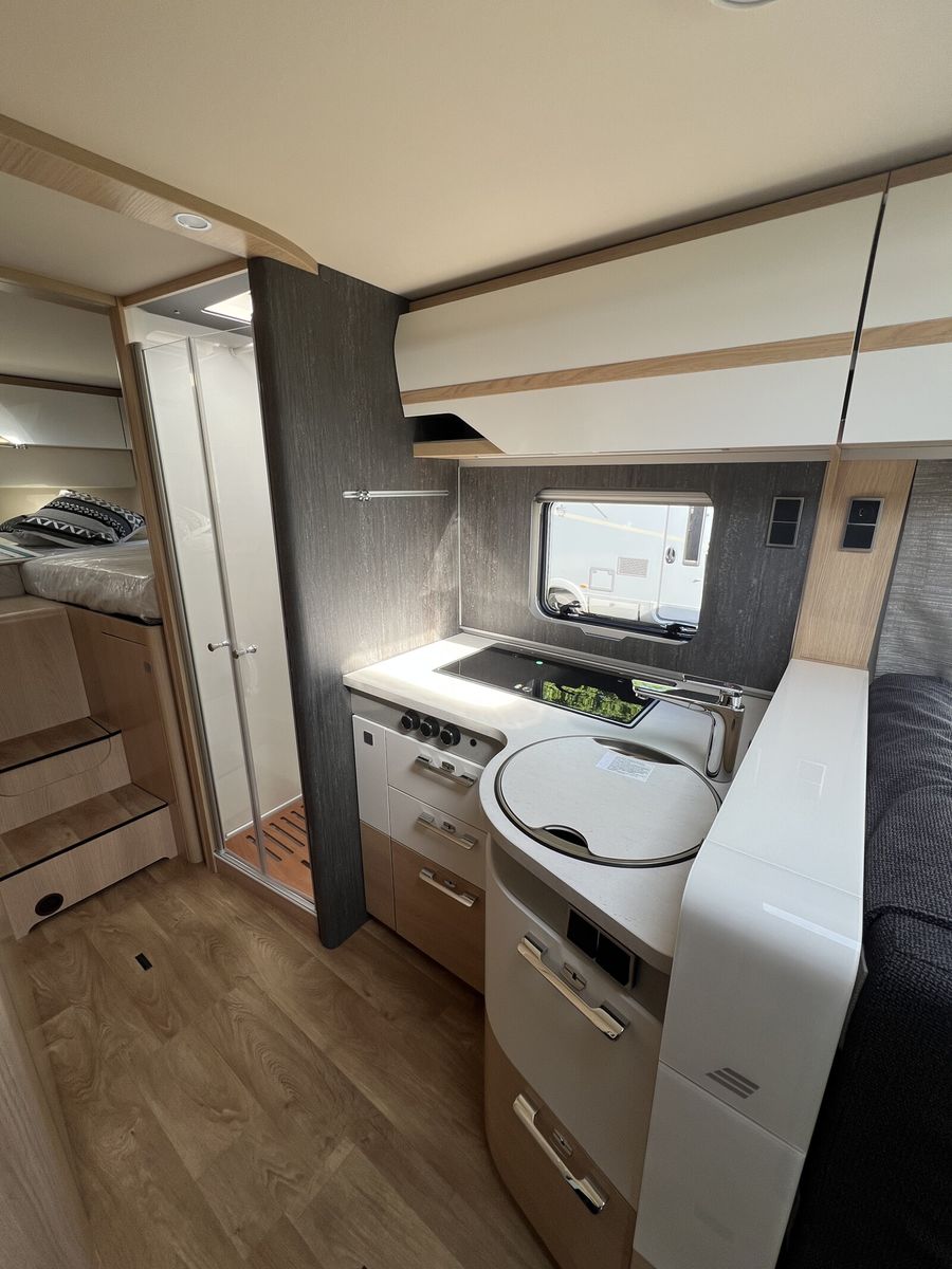 - Wohnkomfort-Paket (Einlegeboden mit Holzoberfläche, 4 x 230 V / 1 x 12 V / 1 x Doppel-USB Zusatzsteckdosen sowie Wohnkomfortleuchten, Spannbettlaken nach Maß für Heckbetten individuell an Matratzen angepasst, 4 Kissen mit Bezug)
