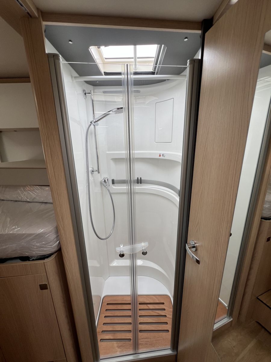 - Wohnkomfort-Paket (Einlegeboden mit Holzoberfläche, 4 x 230 V / 1 x 12 V / 1 x Doppel-USB Zusatzsteckdosen sowie Wohnkomfortleuchten, Spannbettlaken nach Maß für Heckbetten individuell an Matratzen angepasst, 4 Kissen mit Bezug)