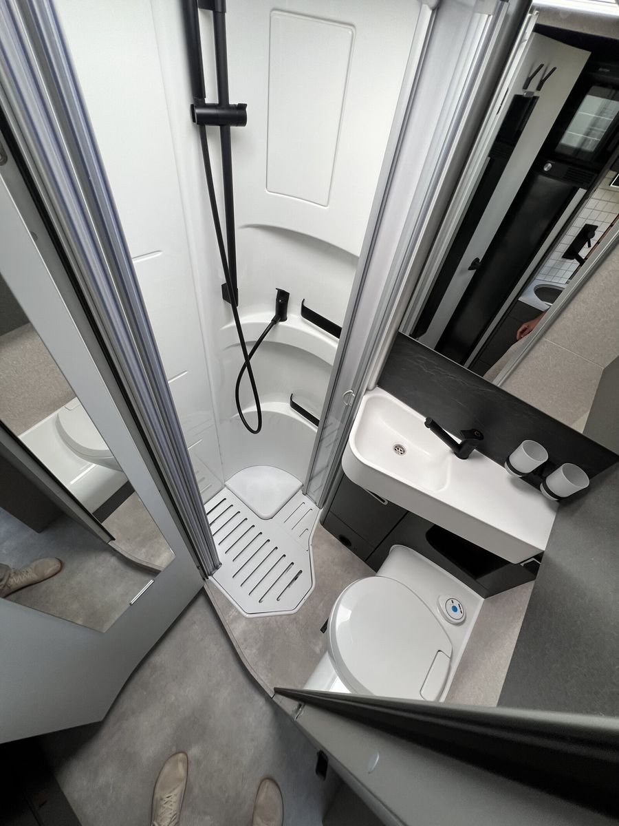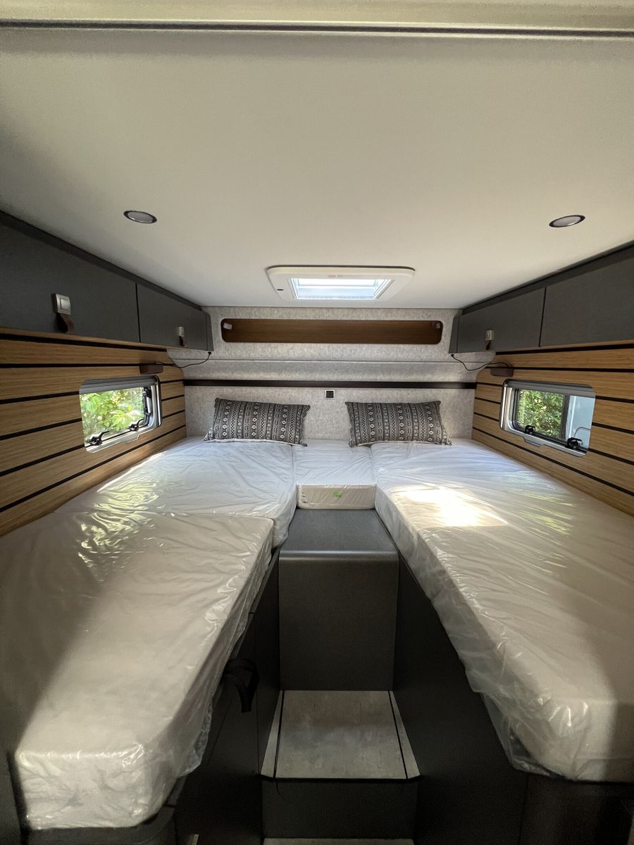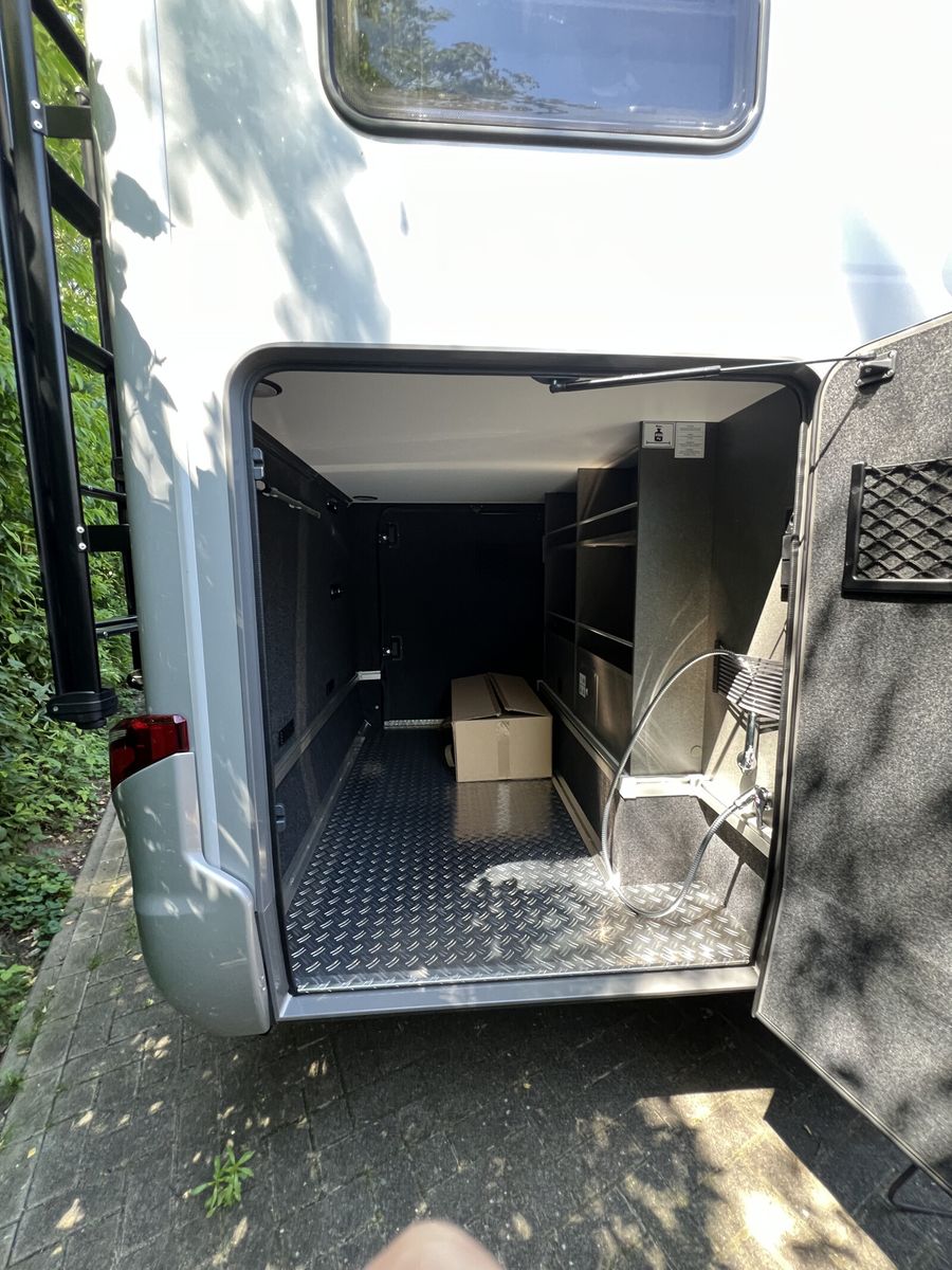 - Wohnkomfort-Paket (Schlafsystem mit Tellerfederrost für Heckbett(en), Spannbettlaken nach Maß für Heckbetten individuell an Matratzen angepasst, Filzverkleidung in Heckgarage, Einlegeboden in der Dusche für ebenen Laufboden, 4 Kissen mit Bezug, Ambient-Light-System: Mehr-Ebenen Lichtsystem mit dynamischer und individueller Steuerung der Beleuchtung (inkl. Lichttemperatur) sowie stimmungsvoller Sockelbeleuchtung, Lichtpaket (Multifunktionale Pendelleuchte sowie eine Ambiente-Leseleuchte für die Multifunktionswände), 3 x 230 V / 1 x 12 V Zusatzsteckdosen)