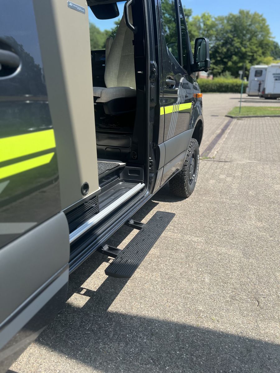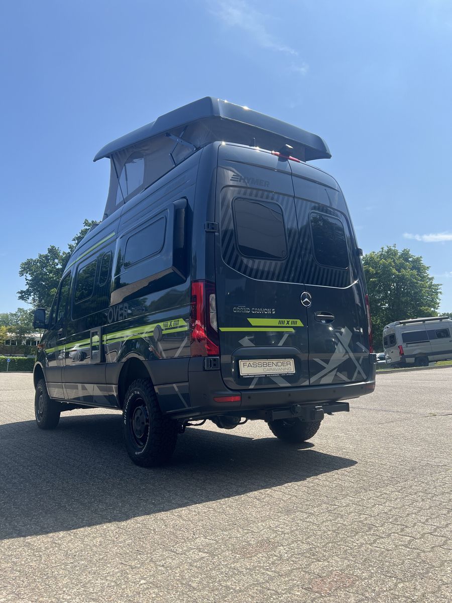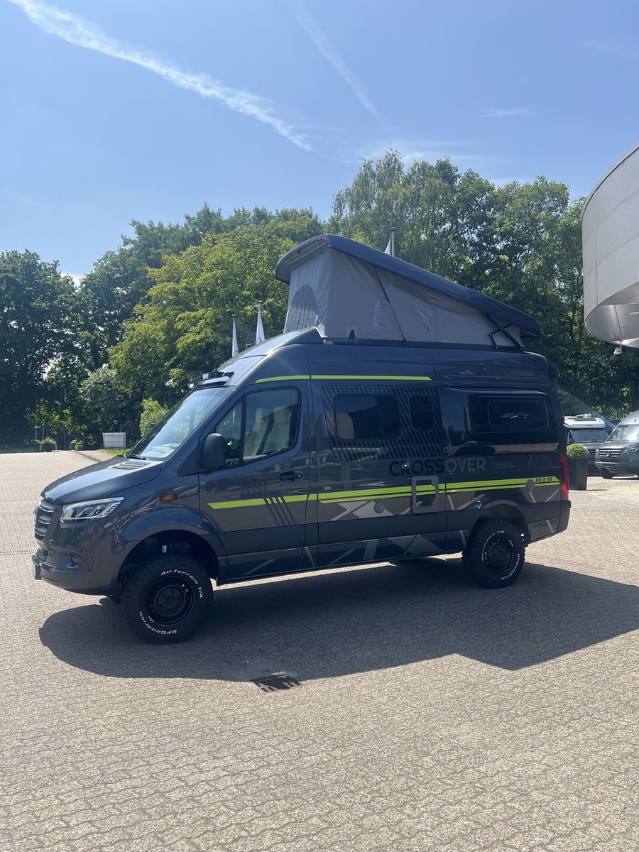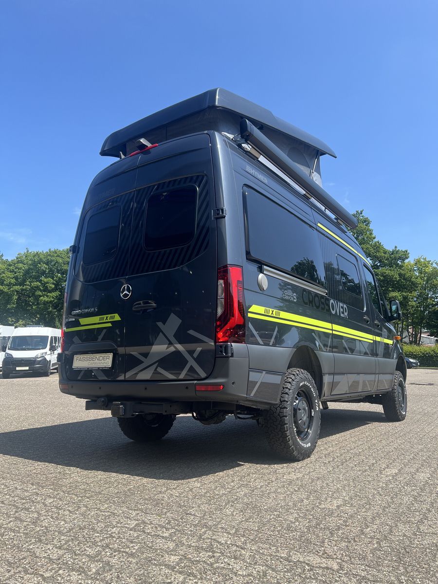 - CrossOver Gesamtpaket Grand Canyon S Markise mit Adapter, Gehäuse anthrazit, 325 x 250 cm, Solaranlage 1 x 95 Watt mit Solarladeregler (MPPT) und Anzeige, Mercedes-Benz Sprinter 3,88 t - 419 CDI - 141 KW/190 PS - Euro VI-E, Metallic Tenoritgrau, Allradantrieb permanent inkl. Heckleuchten in LED-Technik, Automatikgetriebe 9G-TRONIC inkl. Hold-Funktion (x19 CDI), Kühlergrill Chrom, LED-High-Performance-Scheinwerfer, Motor-/Unterfahrschutz, Nebelscheinwerfer mit Abbiegelicht, Stoßfänger und Kühlergrillrahmen in Wagenfarbe lackiert, 16" Stahlfelgen (schwarz) mit Stollenbereifung (All-Terrain), Elektrische Schließhilfe Schiebetür rechts Ablage für Smartphones inkl. wireless charging Funktion und Ladestandsanzeige Ladepaket Instrumententafel mit 2 x USB-C Stecker 5V / 1x 12V-Steckdose Vollautomatische Klimaanlage THERMOTRONIC, Lederlenkrad (bei Automatikgetriebe), Windschutzscheibe beheizbar, MBUX 10,25" Multimediasystem mit Rückfahrkamera, Sprachsteuerung und Touchscreen inkl. Navigation & Smartphone-Integration, Park-Paket mit 360° Kamera, Aktiver Abstands-Assistent DISTRONIC PLUS inkl. Lenkrad-Multifunktionstasten, Aktiver Spurhalte-Assistent Fernlicht-Assistent, Totwinkel-Assistent, Verkehrszeichen-Assistent, Elektrische Offroad-Trittstufe (einklappbar) für mehr Bodenfreiheit, 44" LED-Lightbar über dem Fahrerhaus, Designbeklebung Crossover, 6 kW Diesel-Warmluftheizung mit 10l Warmwasserboiler, Lutdrucksensor (Höhenkit) und 1.800 Watt Elektroheizstab HYMER-Smart-Battery-System 2.0 - (4x80 Ah LFP) inkl. Zusatzlader Wasserfilter für Frischwassersystem, Ambient-Light-System: Mehr-Ebenen Lichtsystem mit dynamischer und individueller Steuerung der Beleuchtung (inkl. Lichttemperatur) sowie stimmungsvoller Sockelbeleuchtung Spannbettlaken nach Maß für Heckbetten individuell an Matratzen angepasst Wohnwelt "HOME" (2 Kissen und Stofftasche), Einlegeboden mit Korkoberfläche Zweite Toilettenkassette inkl. Halterung, 2 Klappstühle und Tisch inkl. Befestigung Werkzeug-Set (Klappspaten, Axt) im Heckstauraum