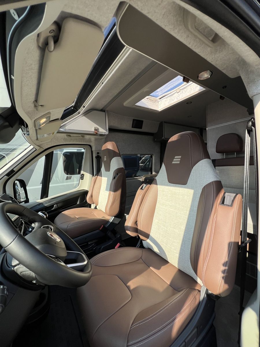 - Wohnkomfort Paket (Skyview Fenster Fahrerhaus inkl. Verdunklung, Ambient-Light-System: Mehr-Ebenen Lichtsystem mit dynamischer und individueller Steuerung der Beleuchtung (inkl. Lichttemperatur) sowie stimmungsvoller Sockelbeleuchtung, Wohnwelt "HOME" (2 Kissen und Stofftasche), Spannbettlaken nach Maß für Heckbetten individuell an Matratzenkonturen angepasst, Einlegeboden mit Korkoberfläche)