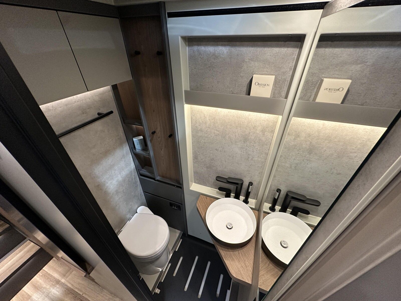 Behälterauszug 155 x 55 cm (2 Behälter 60x40 cm und 1 festes Fach 30x38 cm) auf Beifahrerseite vorne (nur möglich für Modelle 78 und 84)